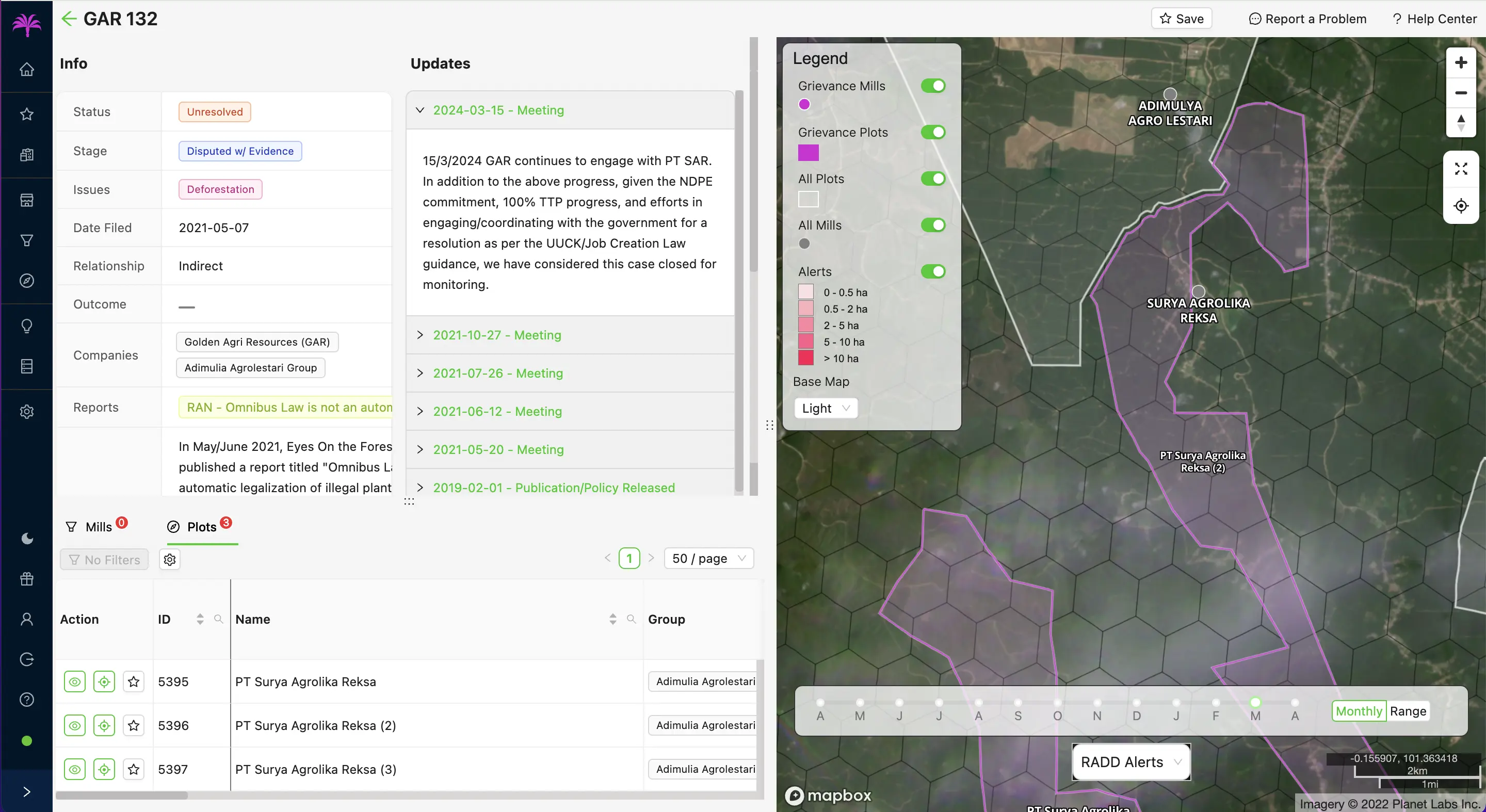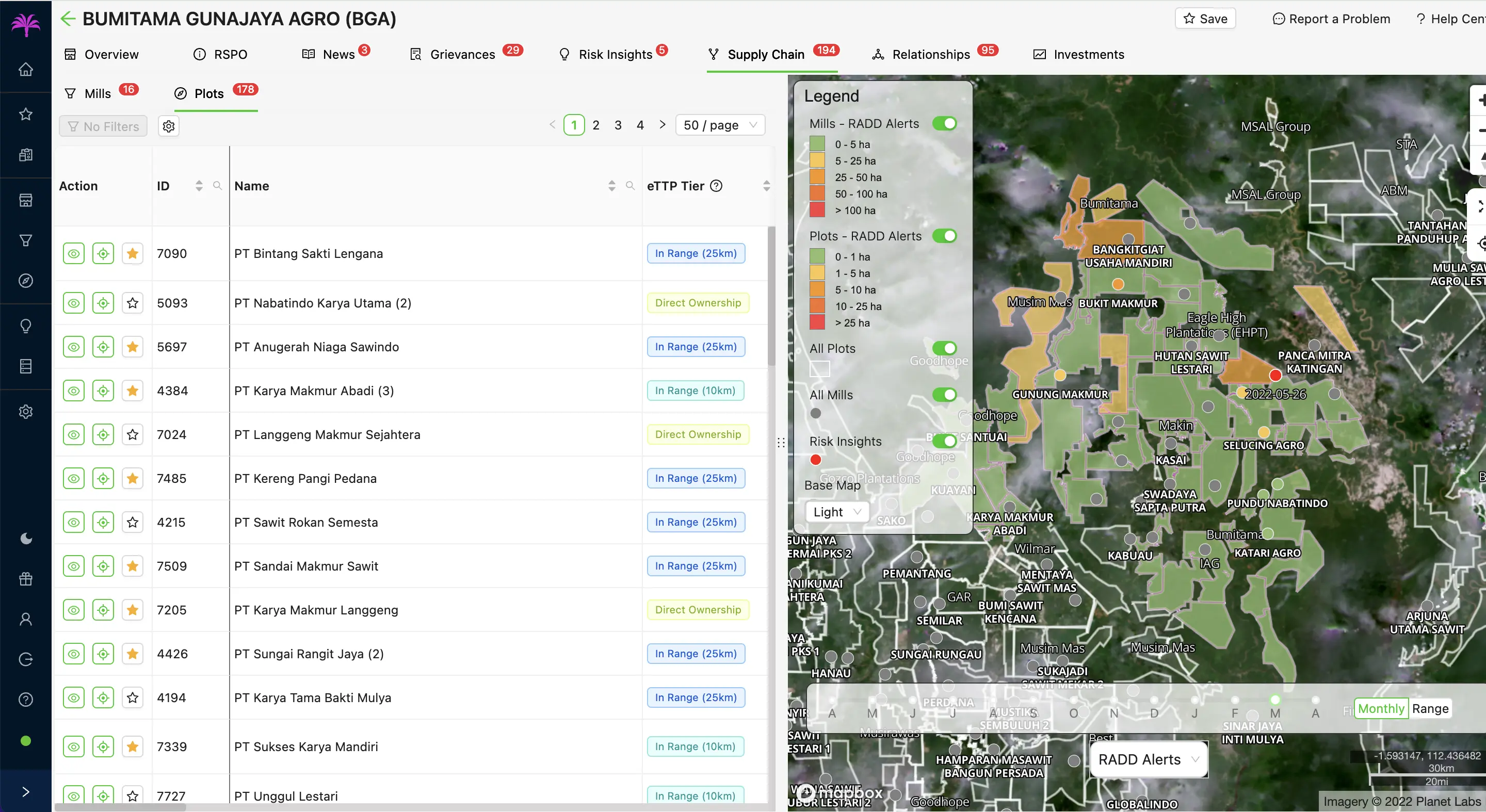 - Securely monitor your plots and mill lists for deforestation and grievances inside our Portfolio feature